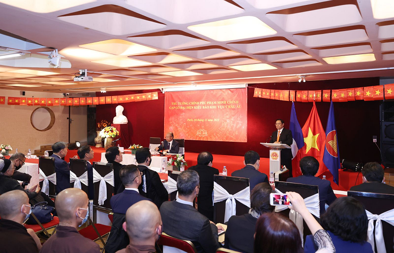 Trong chuyến công tác, Thủ tướng Phạm Minh Chính đặc biệt quan tâm tới cộng đồng người Việt Nam tại Pháp và các nước châu Âu.