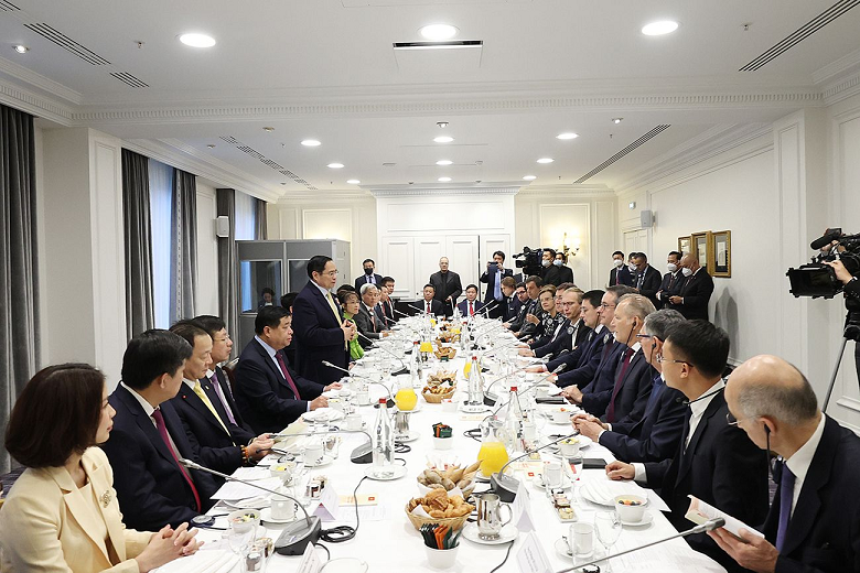 Cũng trong khuôn khổ chuyến thăm, Thủ tướng Phạm Minh Chính đã tiếp nhiều doanh nghiệp hàng đầu của Pháp và châu Âu; dự Diễn đàn doanh nghiệp Pháp-Việt; cùng lãnh đạo Pháp chứng kiến lễ ký kết, trao nhận gần 40 thỏa thuận hợp tác và thỏa thuận kinh tế trên nhiều lĩnh vực, trong đó có nhiều thỏa thuận, dự án có ý nghĩa và giá trị lớn như: Thỏa thuận hợp tác giữa Bộ Tư pháp Việt Nam và Tham Chính viện Cộng hòa Pháp giai đoạn 2021-2026; Thỏa thuận hành chính giữa Bộ Giáo dục và Đào tạo Việt Nam và Bộ Giáo dục đại học, Nghiên cứu và Đổi mới của Cộng hòa Pháp về việc công nhận văn bằng và các quá trình đào tạo; Biên bản ghi nhớ giữa Hãng hàng không Vietjet Air và Tập đoàn Safran về thúc đẩy hợp tác chiến lược toàn diện trên cơ sở doanh số trị giá 10 tỷ USD; Biên bản ghi nhớ hợp tác trị giá 2 tỷ euro giữa Hãng hàng không Bamboo Airways và Tập đoàn Safran...